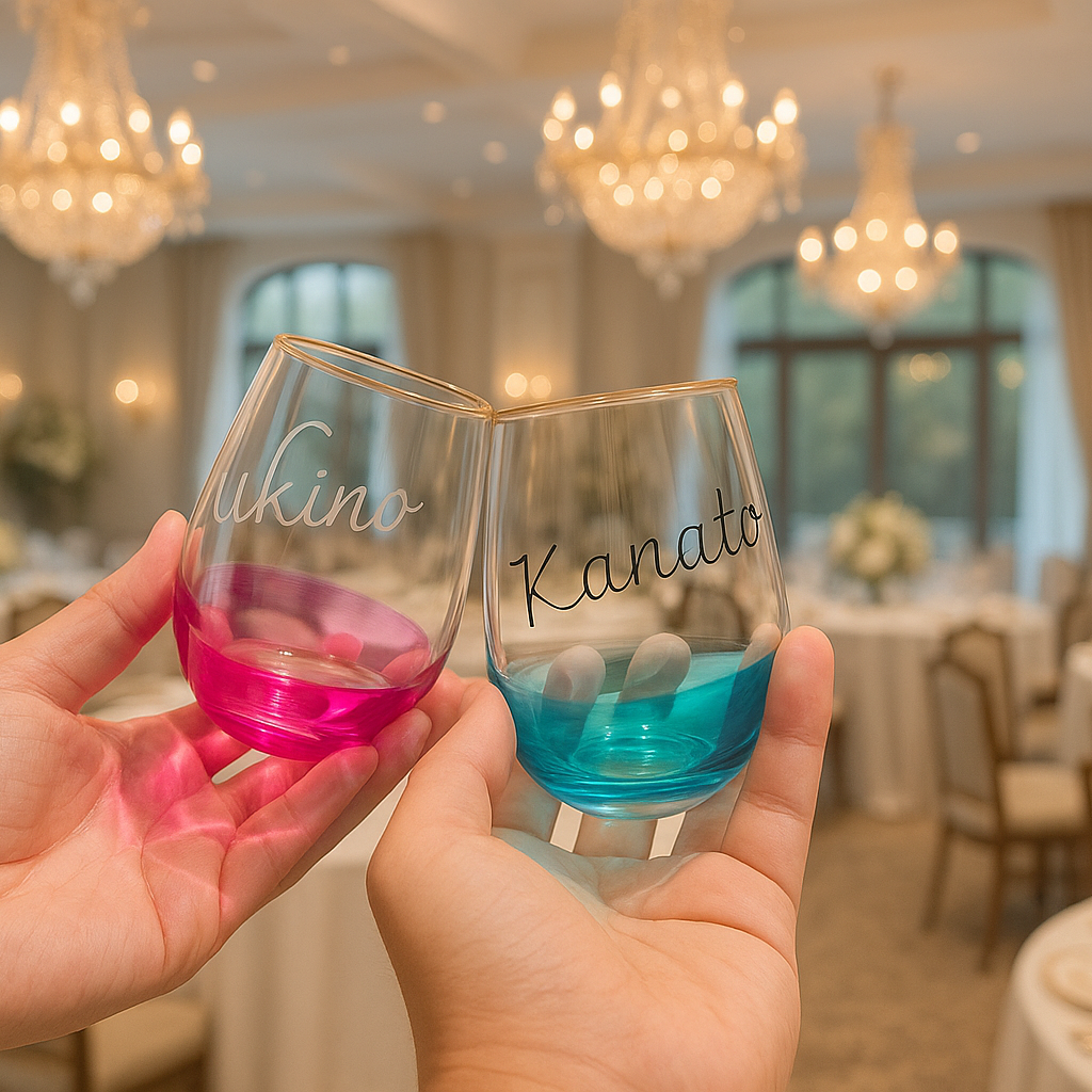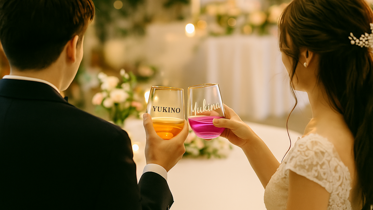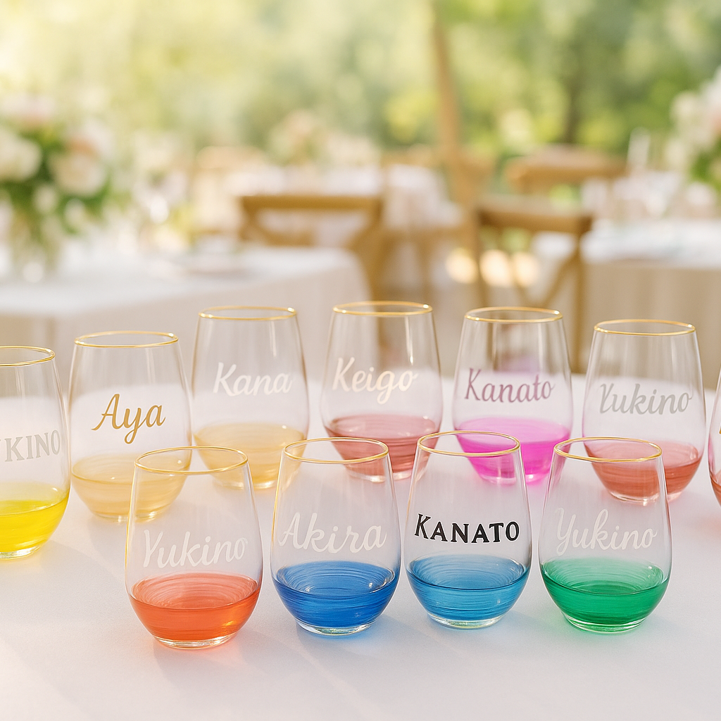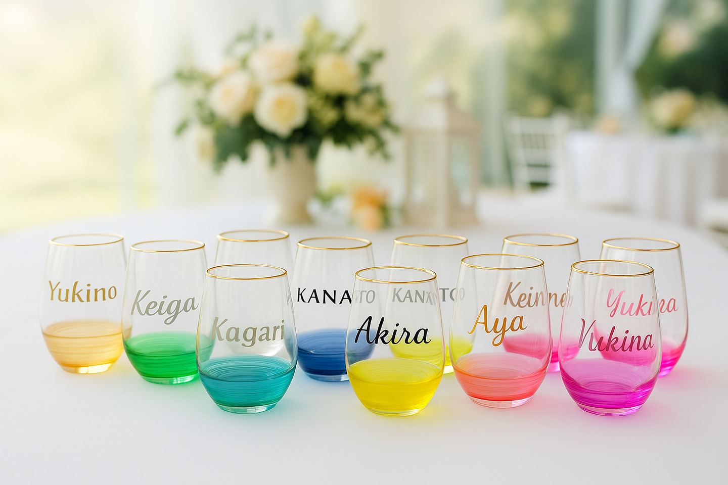 一人ひとりの名前が入ったグラスを見た瞬間、ゲストの皆さんが「すごい!私の名前だ!」と笑顔になってくれたのが印象的でした。
