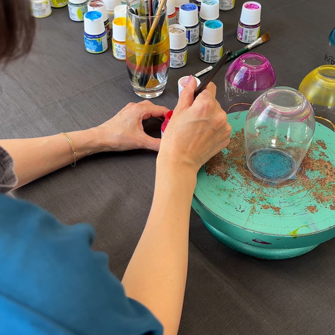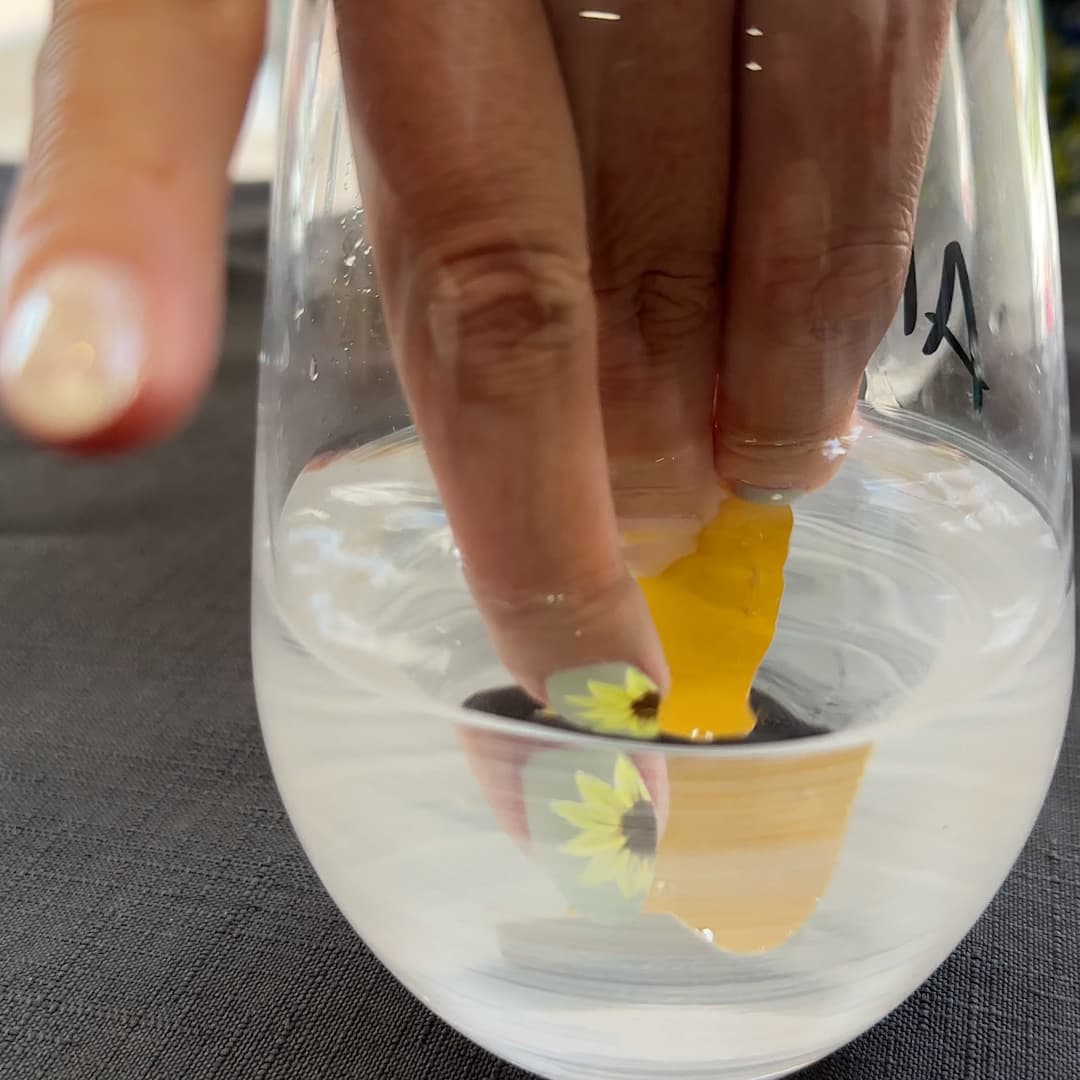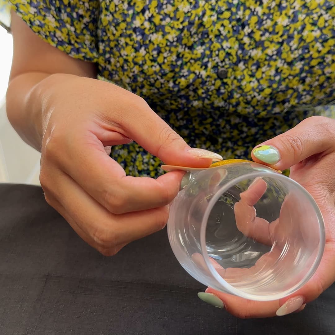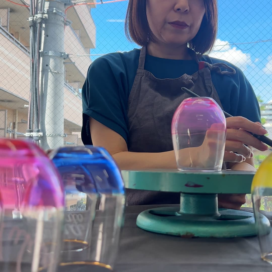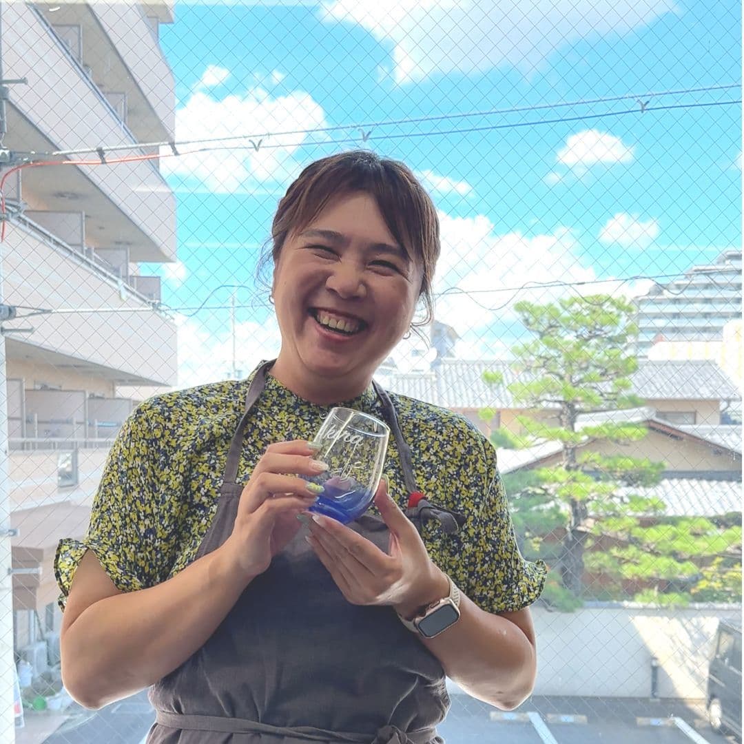 手に取るとガラスの質感がとても良く、底のカラーもやさしく光を反射して華やか。
