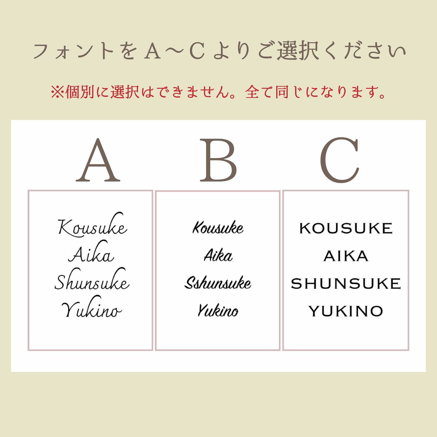 お名前を入れるフォントを、A・B・Cの3種類からお選びください。
